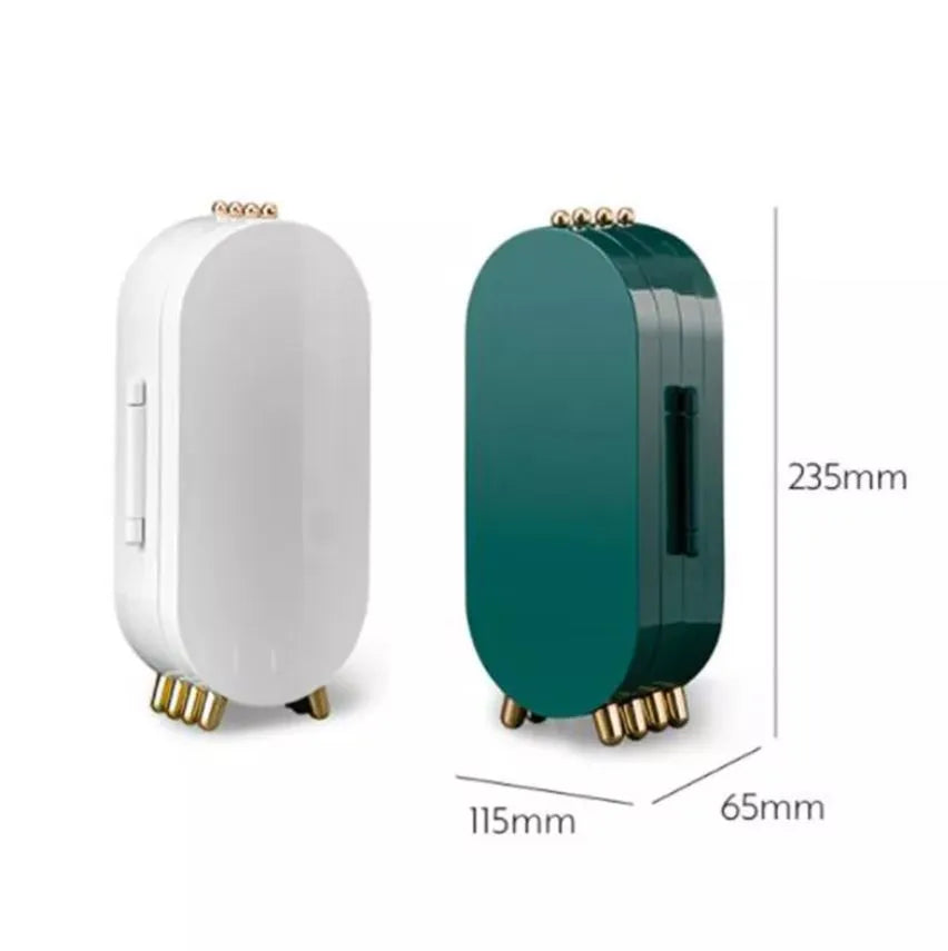 • Are you still struggling with gifts? The peacock green are paired with a gold base and top. This is a perfect travel jewelry organizer for yourself and friends.